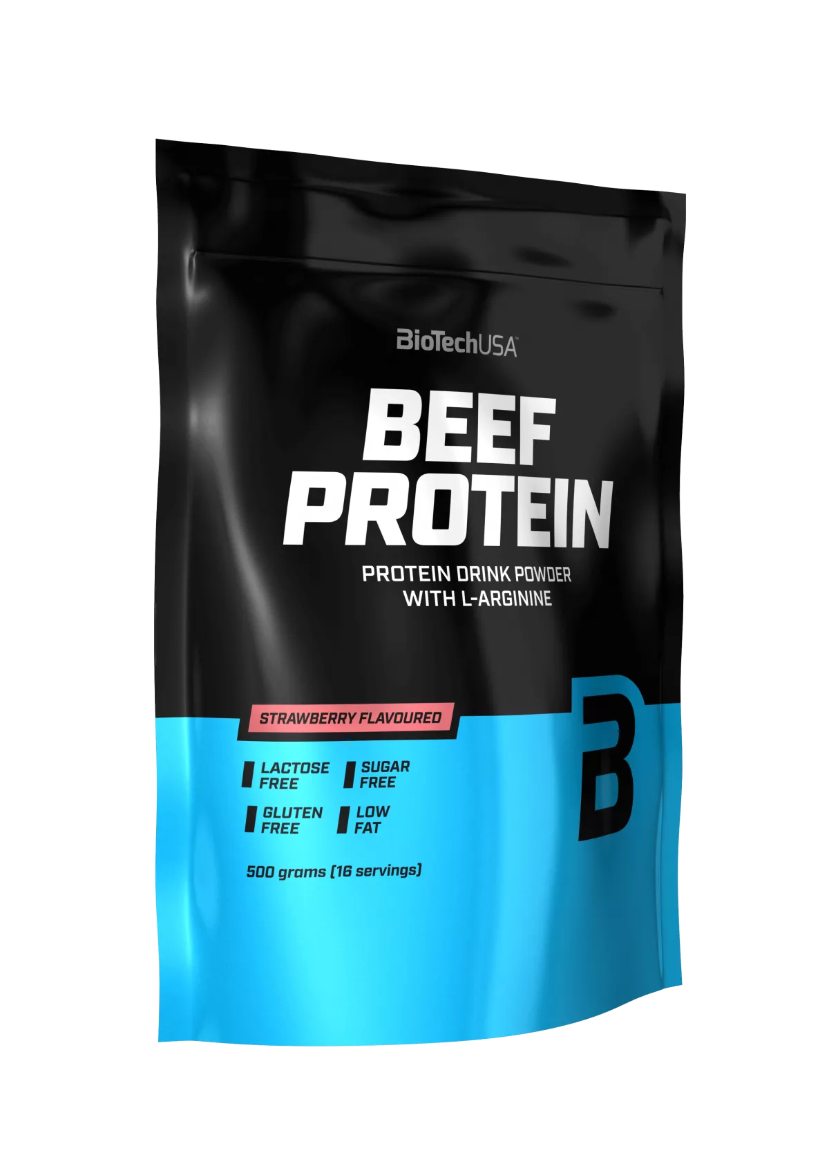 Beef Protein yra baltymų šaltinis, kuris yra lengvai virškinamas, absorbuojama per 60 minučių ir turi aukštą baltymų ir azoto vertę. Mažas riebalų ir angliavandenių kiekis.
