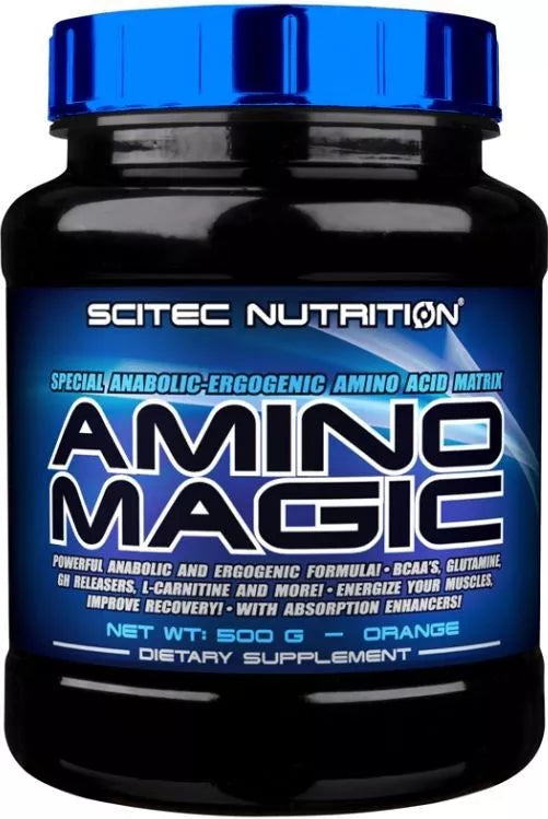 SCITEC AMINO MAGIC - tai 10 komponentų amino rūgščių komplekso papildai sportui. AMINO MAGIC maisto papildai apima esminius išsišakojusios grandinės amino rūgštys (BCAA), glutaminas, azoto oksido (NO) pirmtakas Argininas, Lizinas, ornitino, Taurinas ir amino rūgšties darinys L-karnitinas. Išsišakojusios grandinės amino rūgštys (BCAA) yra svarbi grupė proteinogeninės amino rūgštys, kurioms tenka 35% amino rūgščių raumenų baltymų. Apie 60% visų amino rūgščių, bazę organizme sudaro Glutaminas, kuris labai svarbus intensyvaus sporto metu. Argininas yra prekursorius azoto oksido (NO) ir būtinas kreatino sintezei. AMINO MAGIC papildų formulė skirta pagerinti medžiagų apykaitą, pamaitinti raumeninį audinį intensyvaus sporto metu.